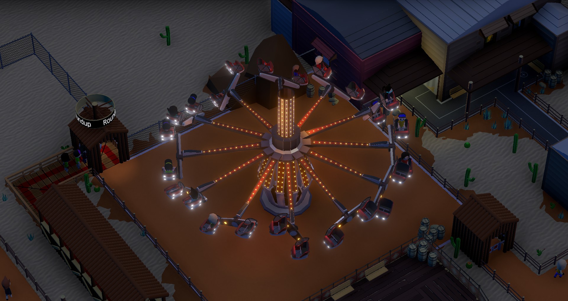 Hexentanz is based off of Zierer’s model of the same name. I had experienced the ride as a child at Minnesota’s Mall of America indoor amusement park. The near-collisions and overtaking motion of the cabins provided a unique experience for me. Revisiting the ride as an adult led to me appreciating its intricacies and unique ride setup. The model itself was fairly difficult to rig and animate, managing a way to keep all cabins upright while having the flexibility on each arms’ motion was a complex task, but ultimately paid off in the end.